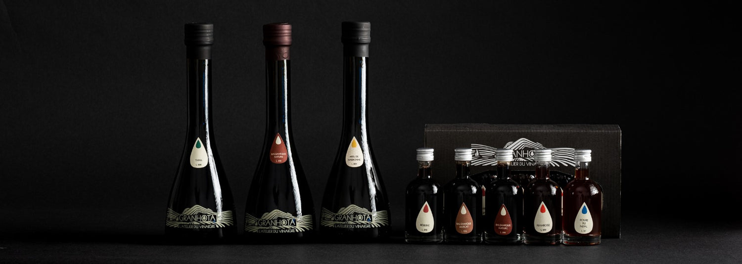 Découvrez nos assemblages de vinaigres, pour des cadeaux atypiques et gourmands.